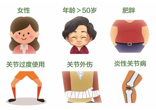 1、年齡:隨年齡增長,由于關(guān)節(jié)多年積累性勞損,常發(fā)生關(guān)節(jié)軟骨退行性變。