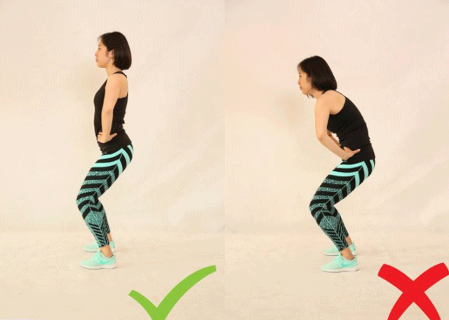 正確動(dòng)作要領(lǐng):腰背挺直,膝蓋不超過腳尖