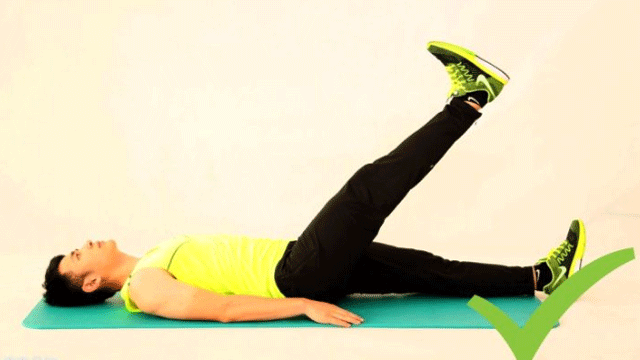 正確動(dòng)作要領(lǐng):大腿繃住,在膝關(guān)節(jié)伸直情況下將大腿抬高