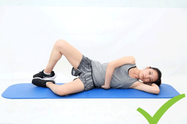 正確動(dòng)作要領(lǐng):側(cè)臥位屈髖屈膝,如同貝殼打開,一側(cè)腿做外旋至最大幅度,骨盆保持不動(dòng)
