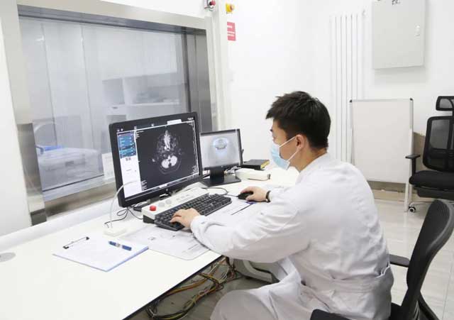 常規(guī)的超導(dǎo)型磁共振外觀是一個大型圓筒,患者通常會獨自在磁共振掃描室內(nèi),但掃描人員能實時看到、聽到檢查者在檢查期間的情況,并保持對講機處于開放狀態(tài)。檢查期間給予適當大小的耳塞或耳機,患者躺在可移動的檢查床上移入磁場的中心。成像過程中,最重要的是保持身體的靜止狀態(tài),不可隨意扭動身體及四肢。檢查者會聽到、感受到檢查過程中比較大的機械聲音或撞擊聲,這是正常現(xiàn)象,不必驚恐,只要保持不動即能順利完成檢查,獲得清晰的圖像。