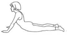 姿勢(shì):俯臥位,保持髖部緊貼床面,用肘部將上身?yè)纹?,使腰部輕輕后伸。