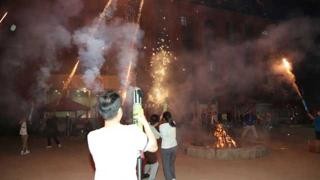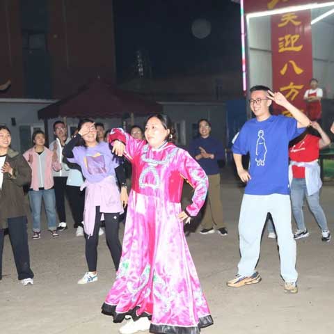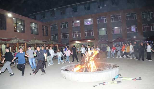 夜幕降臨,篝火點燃,大家熱情高漲,做游戲、歡歌熱舞、燃放煙花,夜空璀璨、霓虹閃耀、匯聚成一片歡樂的海洋。