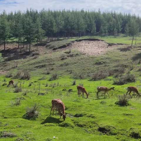 七彩森林景區集草原、森林、湖泊、丘陵地貌于一體,森林中的樹木花草會隨著季節的交替呈現出不同的形態及顏色,這也是七彩森林名字的由來。