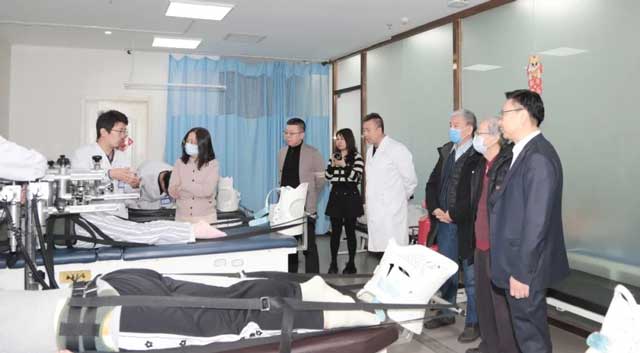在趙永林院長及醫院領導班子成員的陪同下,謝陽谷等一行參觀了醫院中醫科、骨傷科、康復科、脊柱側彎門診、口腔科、住院部等主要業務部門。參觀過程中趙永林院長向來賓介紹了醫院的總體業務布局、各科室的業務開展情況、醫療特色等。在脊柱側彎門診,吳永超主任還向來賓詳細介紹了四維矯正專利系統的特點和臨床應用情況,各位專家、老領導還就各自關心的問題進行了詢問和了解。