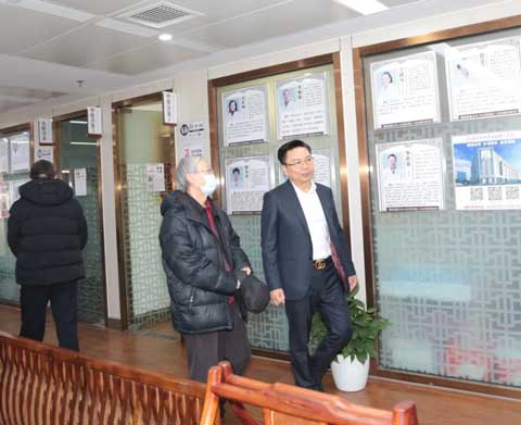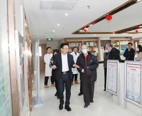 2月22日,北京市中醫管理局原局長、北京市中醫協會原會長謝陽谷,國家中醫藥管理局機關服務局原副局長、中國中醫藥信息學會副會長兼執行秘書長朱佳卿,國家中醫藥管理局科技司原副司長孫麗英,北京市中醫管理局醫政處原處長、北京市中醫文化協會會長趙建宏,中國中醫科學院望京醫院副院長曹煒,中國醫藥導報副社長、中國中醫藥信息學會基層醫療服務分會會長張皓臣一行到我院調研指導工作。
