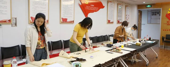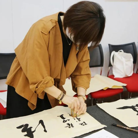 在醫院五樓會議室,書法家們揮毫潑墨,巧思妙書,為我院醫護工作者創作了二十余副書法作品。每位書法家的藝術風格都各具特色,功底深厚,有的作品工整雋永,有的蒼勁有力,有的飄逸靈動,都無不彰顯出書法家中國書法藝術的博大精深,為全院醫護呈獻了一場藝術盛宴。