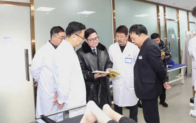 在趙永林院長、李世榮副院長等院領導的陪同下,溫建民教授先后參觀了醫(yī)院門診大廳、檢驗科、放射科、口腔科、中醫(yī)科、骨傷科、康復科、手術室、住院部等主要核心業(yè)務部門,并不時就一些關心的問題了解情況,趙永林院長及李世榮副院長全程向溫建民教授介紹了醫(yī)院各科室的軟硬件環(huán)境和主要開展業(yè)務項目及業(yè)務特色等。