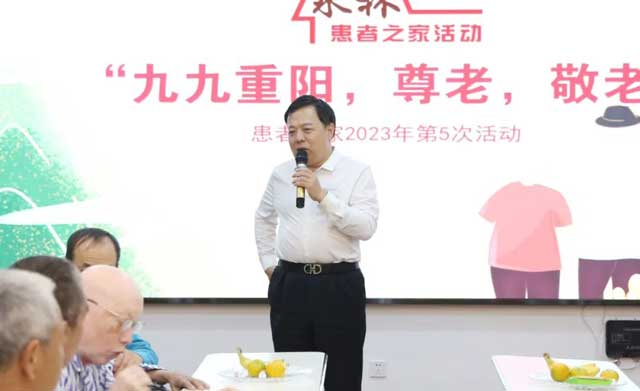 之后,趙永林院長發表了熱情洋溢的致辭,他代表醫院向廣大患者長期以來對醫院的支持和信任表示衷心的感謝,并祝愿大家重陽節快樂,生活幸福,健康長壽!他表示,為廣大患者提供優質、便捷、舒心的服務是醫院的宗旨和工作目標,希望廣大患者對醫院工作多提寶貴意見和建議,醫院將不斷改進不足,優化服務流程,完善服務細節,提高醫療質量和服務能力,為保障轄區市民健康做出更大貢獻。
