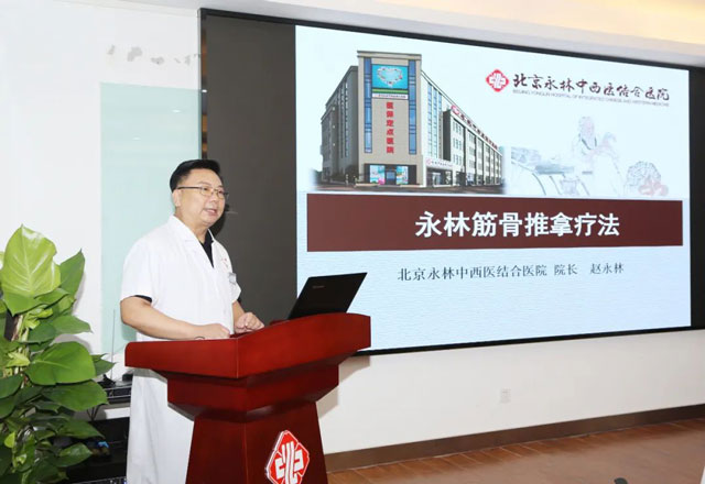 永林筋骨推拿療法是趙永林院長(zhǎng)在傳承清宮骨傷整體治療思路,承襲紅星骨傷流派手法基礎(chǔ)上,通過(guò)三十多年臨床學(xué)習(xí)與實(shí)踐,融匯多家之長(zhǎng)所總結(jié)研創(chuàng)的以整體觀、辯證觀、中西醫(yī)結(jié)合為特色的推拿療法體系。其在理筋手法方面進(jìn)行創(chuàng)新性改良,并將現(xiàn)代醫(yī)學(xué)解剖學(xué)和生物力學(xué)理論相結(jié)合,中醫(yī)臟腑推拿與經(jīng)絡(luò)經(jīng)筋理論、運(yùn)動(dòng)創(chuàng)傷手法和推拿手法相融合,技法獨(dú)特,有效提高了臨床診斷質(zhì)量及治療效果,受到業(yè)內(nèi)及廣大患者的認(rèn)可和好評(píng)。
