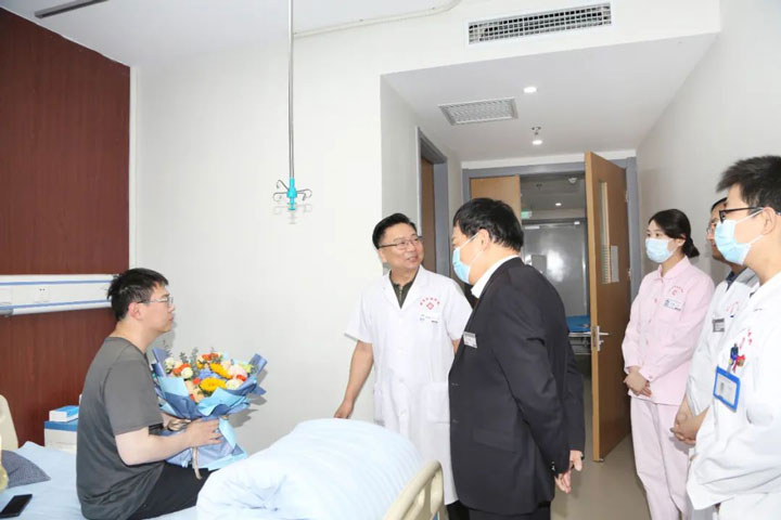 11月14日上午,我院趙永林院長與李世榮副院長到住院部看望在我院康復治療的殘奧會射箭冠軍何梓豪先生,對其到我院康復表示關心和慰問,并對其勇奪兩枚殘奧會射箭金牌的奮勇拼搏精神給予高度稱贊。