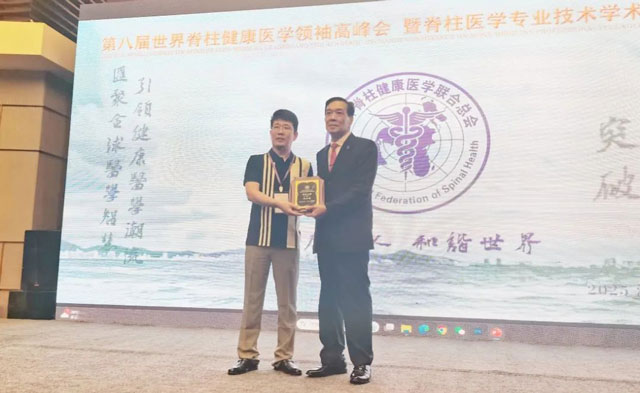 鑒于吳永超主任在脊柱側彎保守治療領域的重大貢獻,世界脊柱健康醫學聯合總會主席邱九桁教授特授予吳永超主任“世界脊柱健康醫學聯合總會第八屆世界脊柱健康醫學領袖高峰會聯合主席”殊榮。