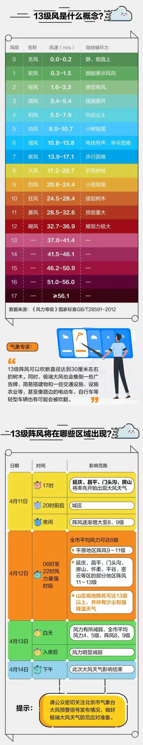 北京市氣象臺(tái)已發(fā)布近10年來(lái)首個(gè)全市大風(fēng)橙色預(yù)警,預(yù)計(jì)4月11日夜間至12日將出現(xiàn)8–13級(jí)局地陣風(fēng),并伴有沙塵和強(qiáng)降溫。為確保您的安全,我院特別提醒如下:
